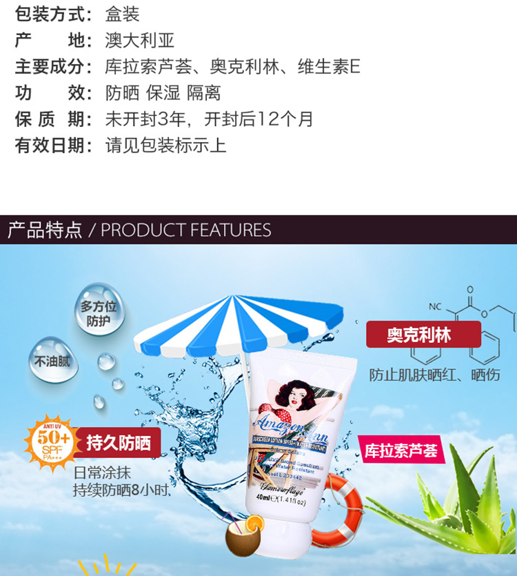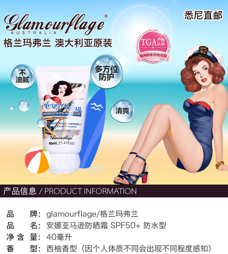 格兰玛弗兰安娜亚马逊防晒乳40ml SPF50+防水型