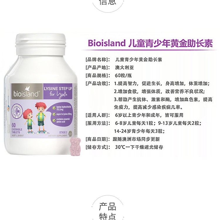 Bio island黄金助长素儿童青少年赖氨酸1段150g