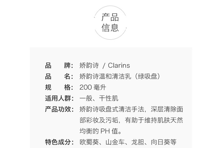 Clarins 娇韵诗 温和清洁乳200ml 清除彩妆污垢洁面乳卸妆绿吸盘无泡洗面奶