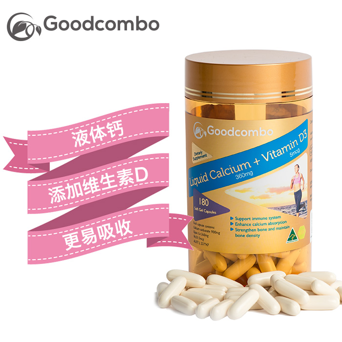 Goodcombo 液体钙+维生素D3复合胶囊 180粒