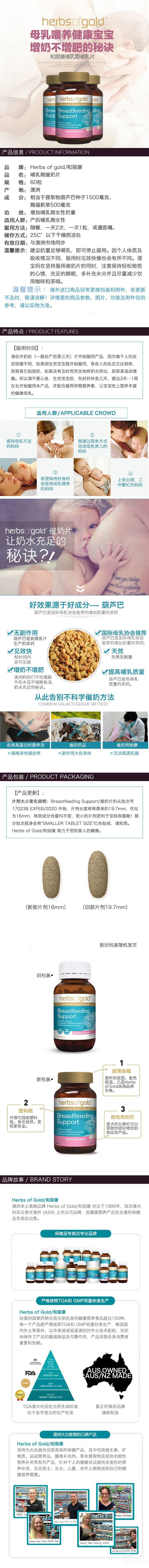Herbs of Gold 和丽康催奶片下奶片 哺乳期天然草本 60粒