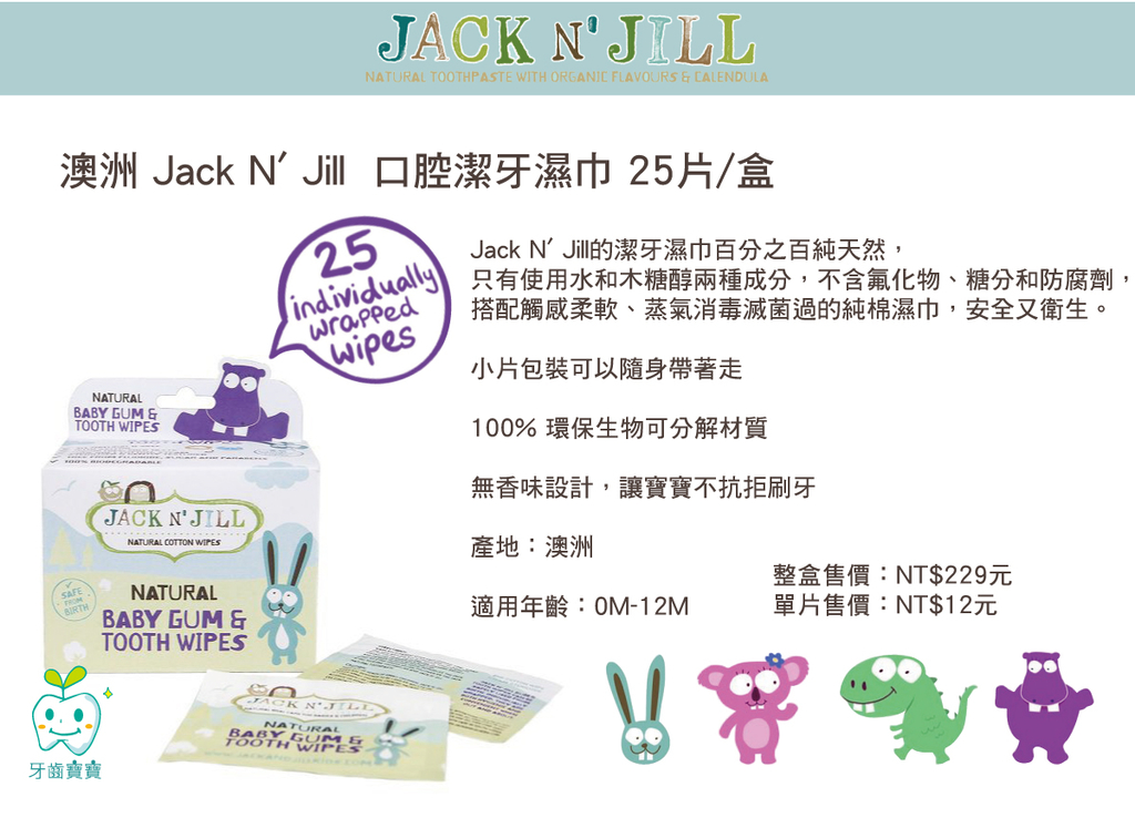 Jack N‘Jill 杰克婴儿牙龈牙齿清洁纯棉湿巾洁牙布 25片