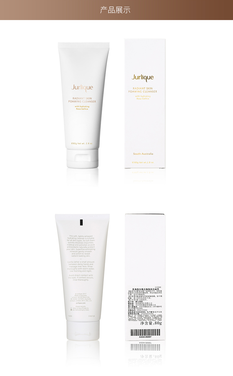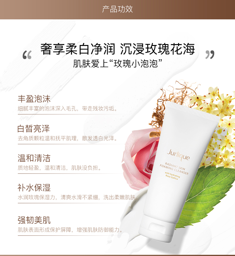 Jurlique茱莉蔻玫瑰亮颜泡沫洁面乳80g