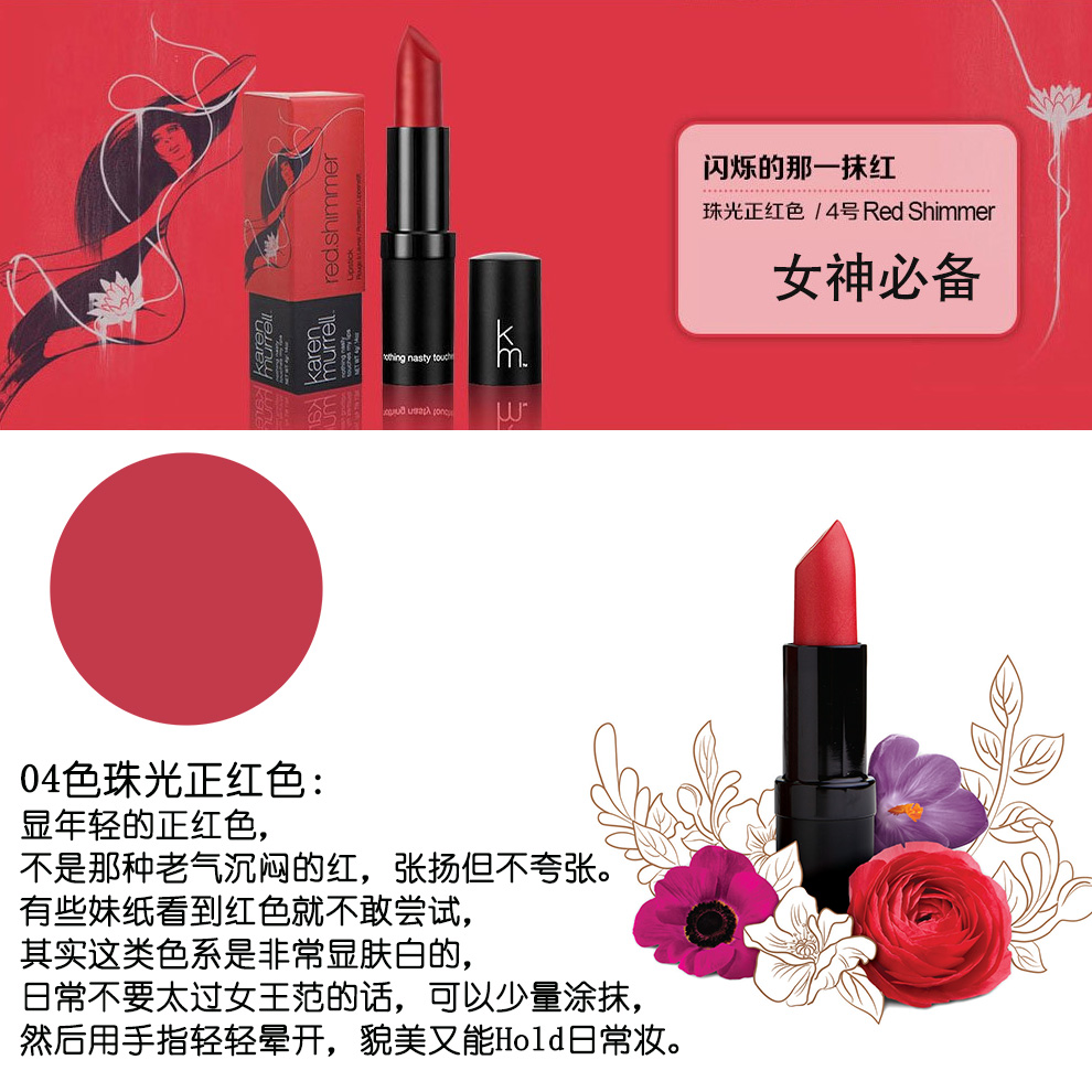 Karen Murrell 19号 纯天然植物持久保湿 新西兰KM有机口红 激情悦动 4g