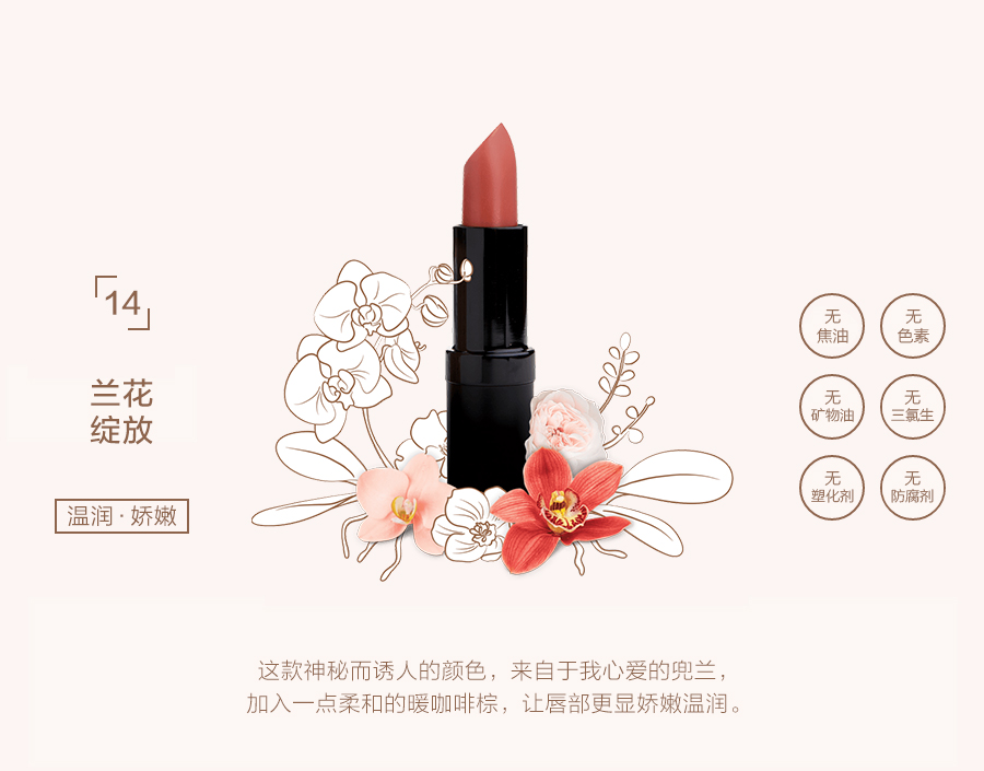 Karen Murrell 14号 纯天然植物持久保湿 新西兰KM有机口红 兰花绽放 4g