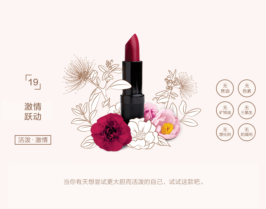 Karen Murrell 19号 纯天然植物持久保湿 新西兰KM有机口红 激情悦动 4g