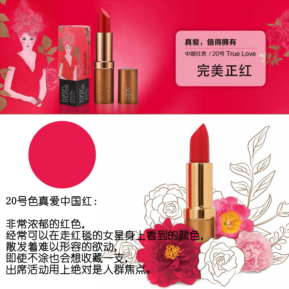 Karen Murrell 19号 纯天然植物持久保湿 新西兰KM有机口红 激情悦动 4g