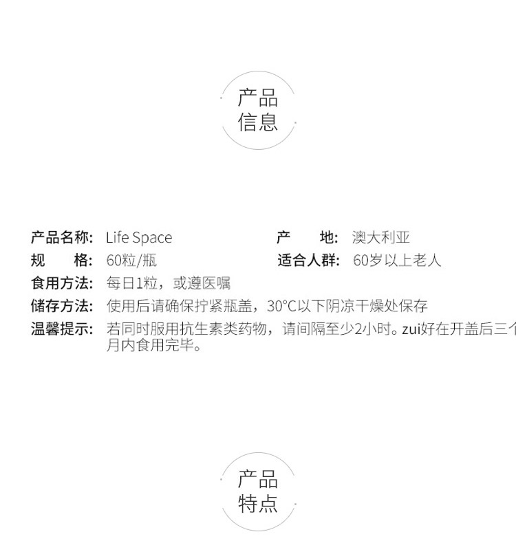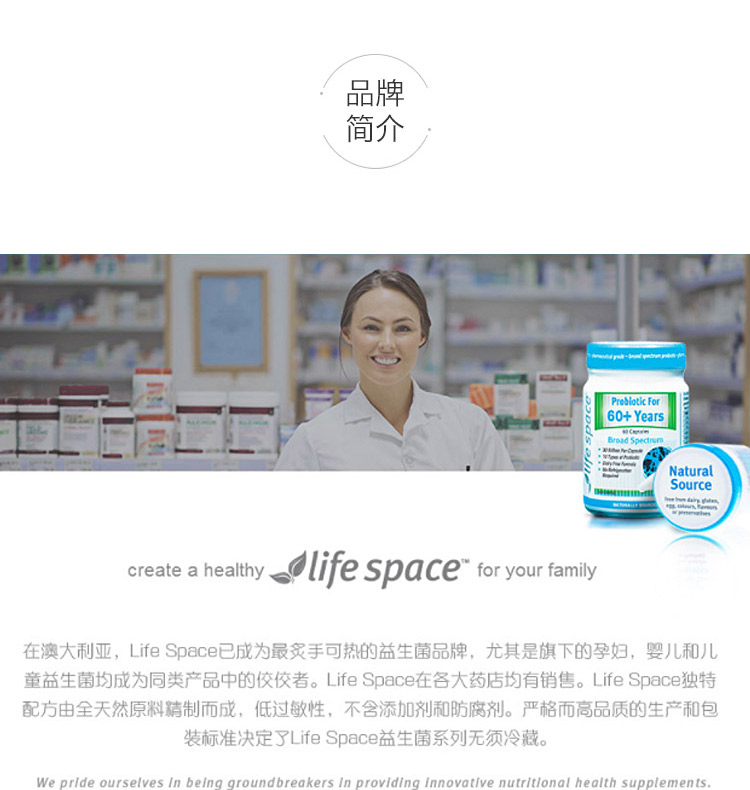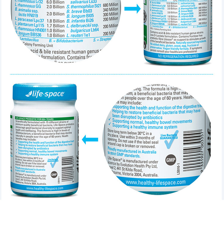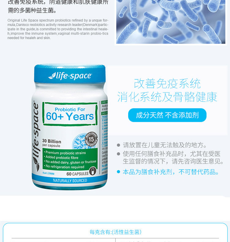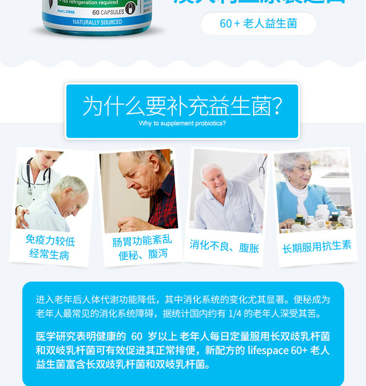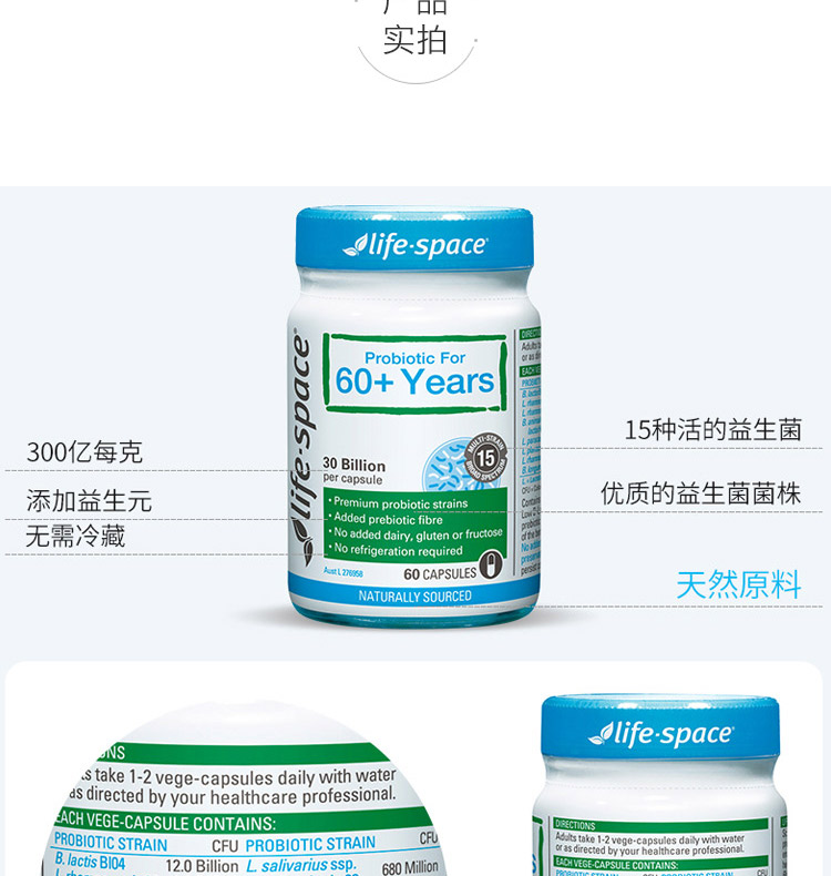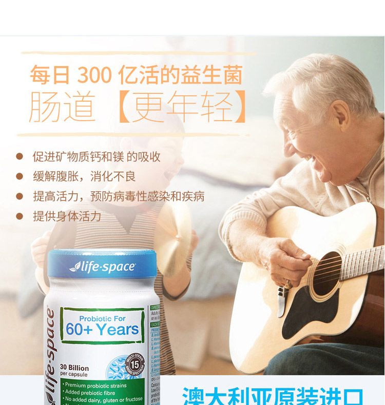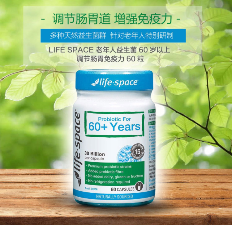 Life Space 60岁以上老年人益生菌 调节肠胃免疫力 60粒