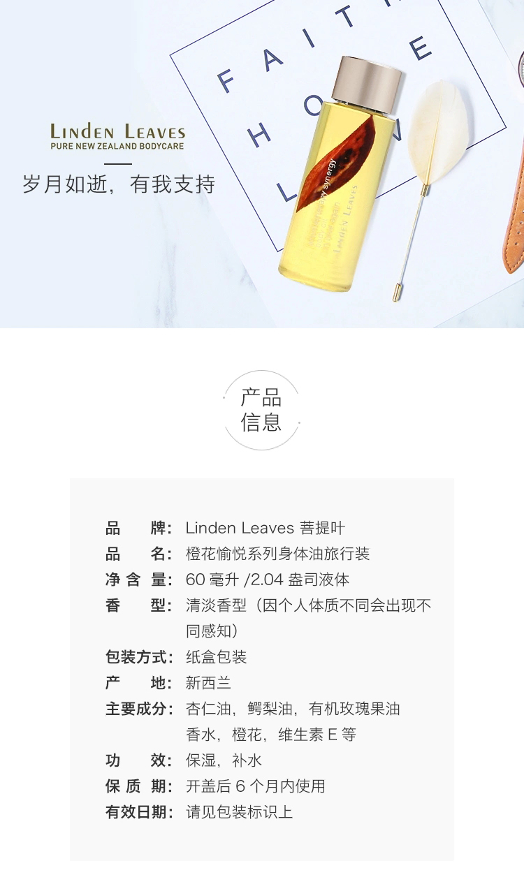 Linden Leaves菩提叶新西兰身体油 保湿滋润柑橘按摩香薰精油60毫升