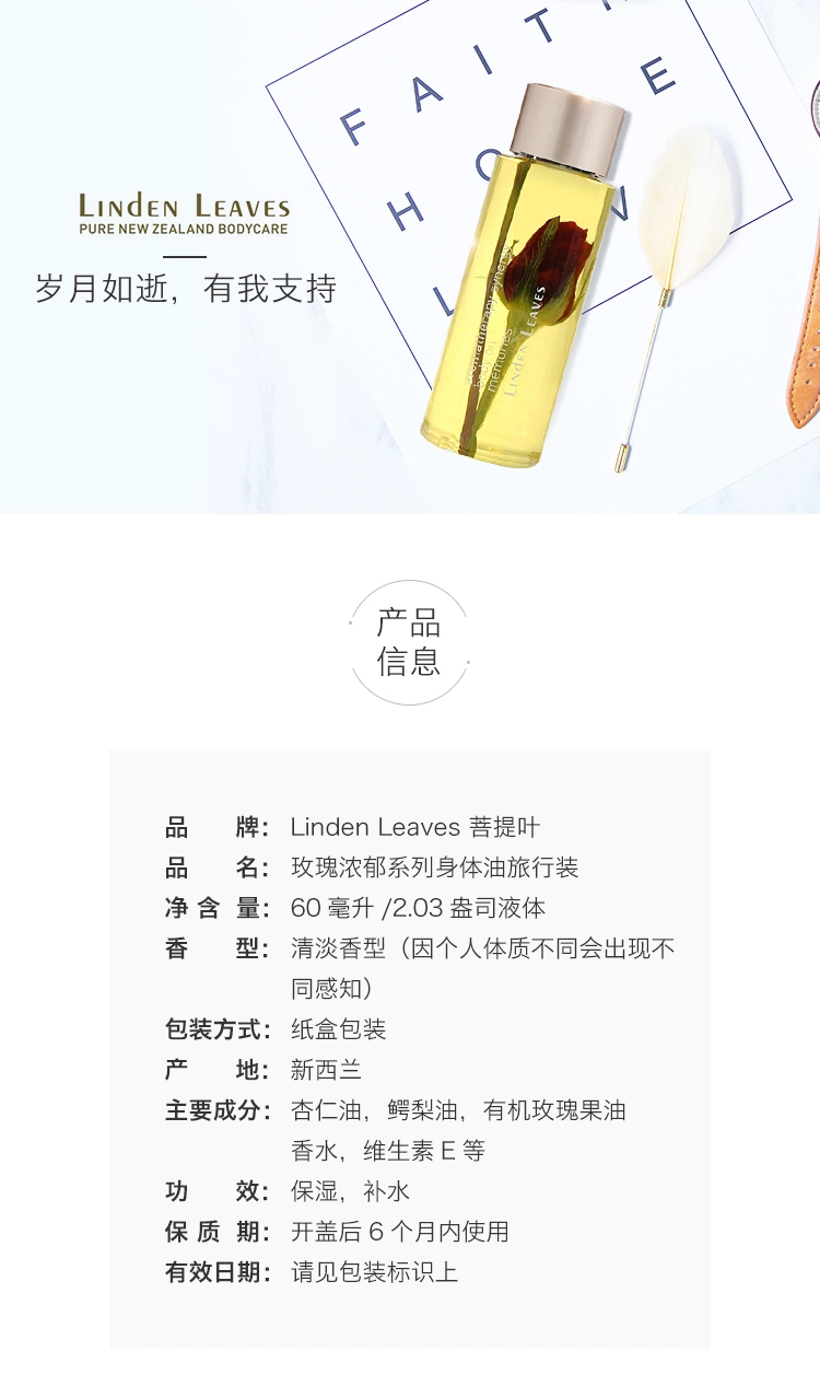 Linden Leaves菩提叶进口身体油 保湿滋润薰衣草按摩香薰精油60毫升