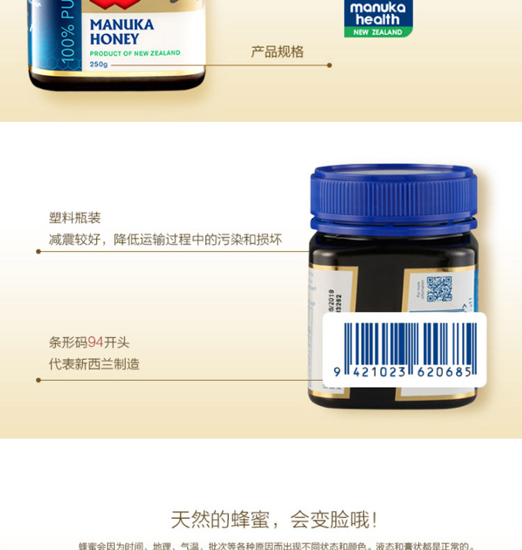 Manuka Health 蜜纽康 麦卢卡蜂蜜 MGO 250+ 250g