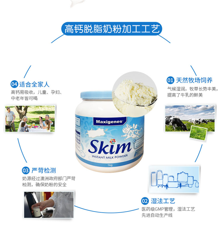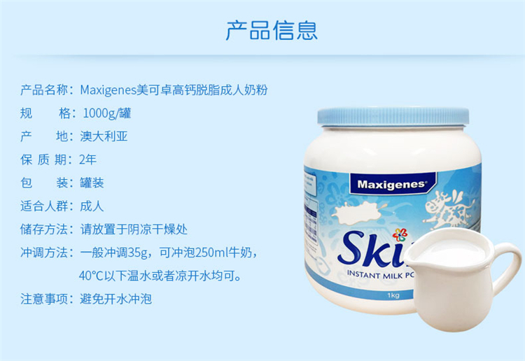 Maxigenes 美可卓 成人脱脂奶粉 蓝妹子1kg