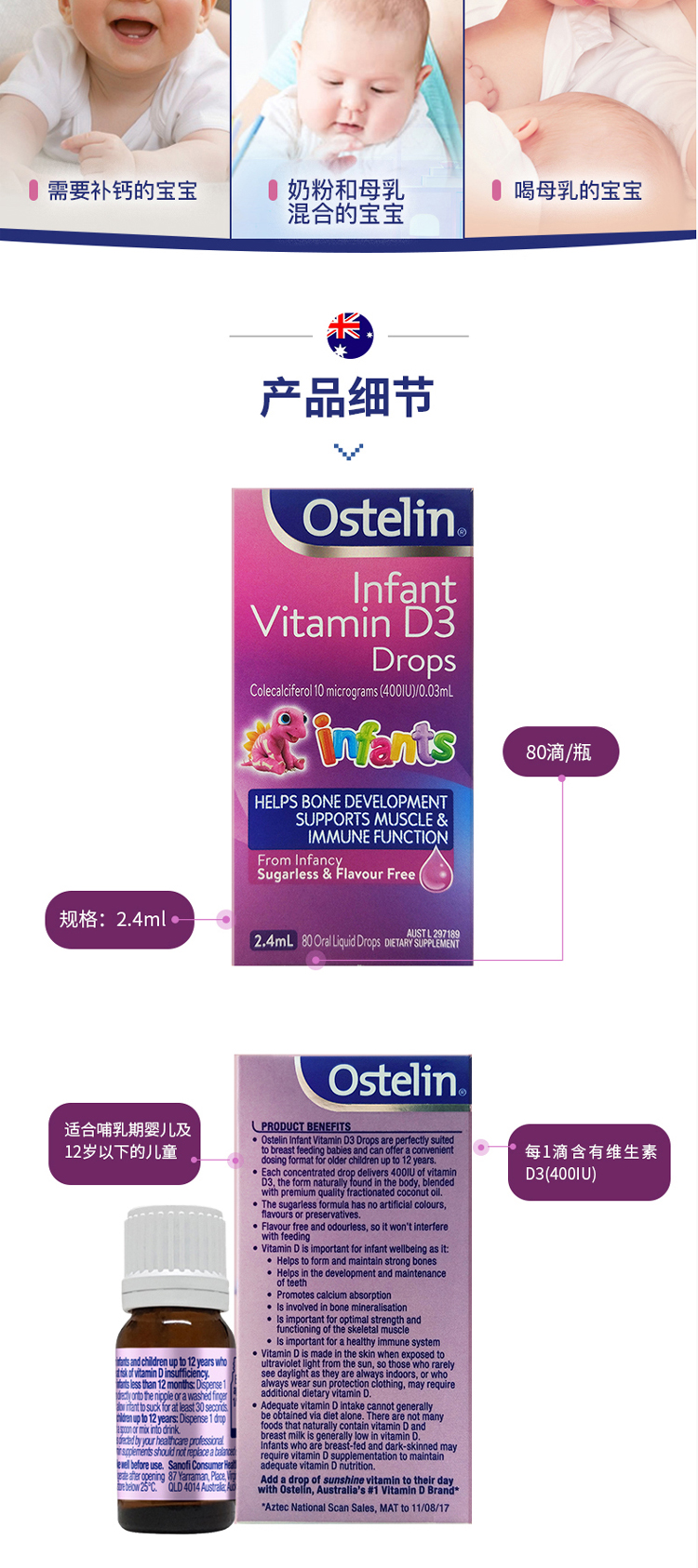 Ostelin 奥斯特林 液体VD 婴幼儿维生素D滴剂 20ML