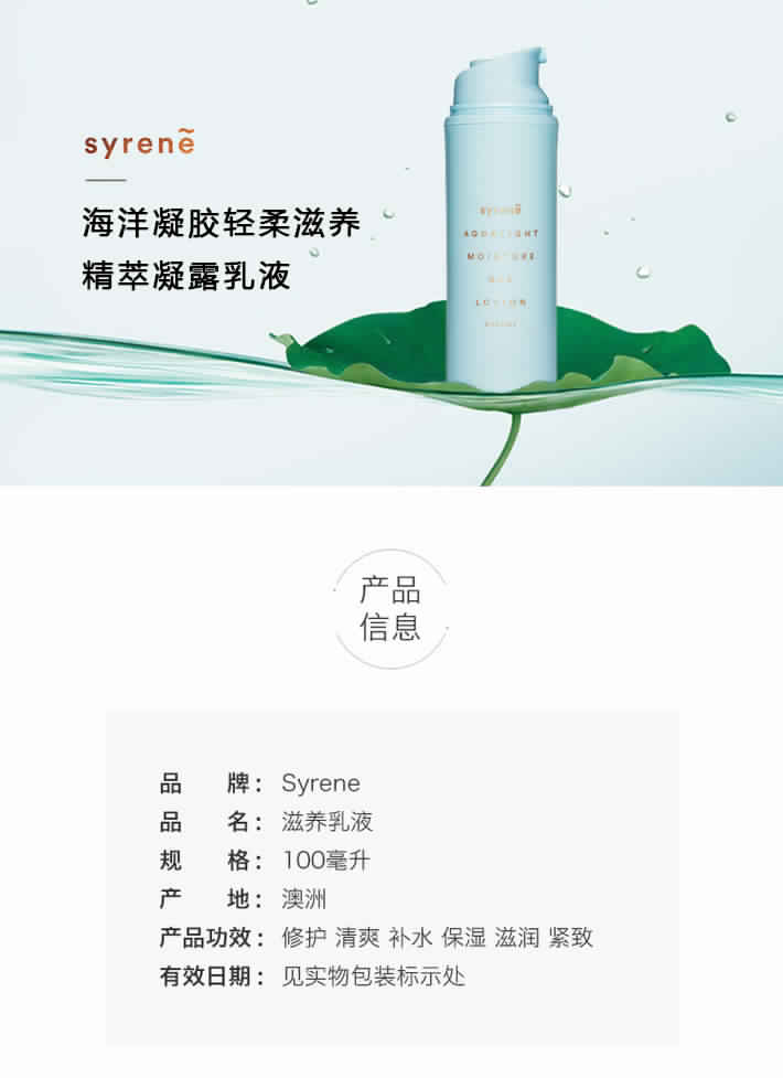 Syrene Aqua 海洋凝胶轻柔滋养乳液 100ml
